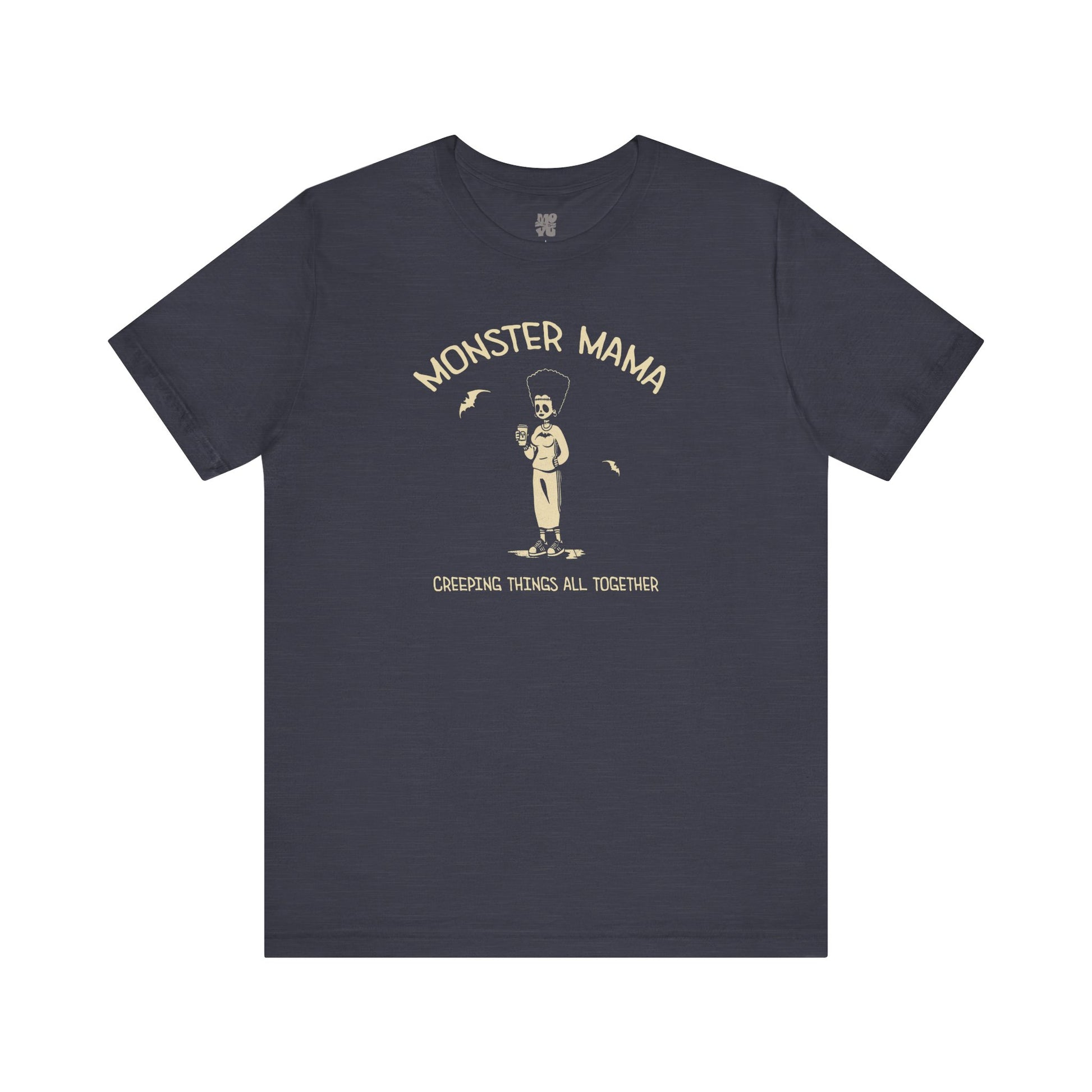 Halloween fun honoring mom, the lady that keeps the monsterverse together. Â T-shirt for mothers features the ultimate monster mother taking a coffee break