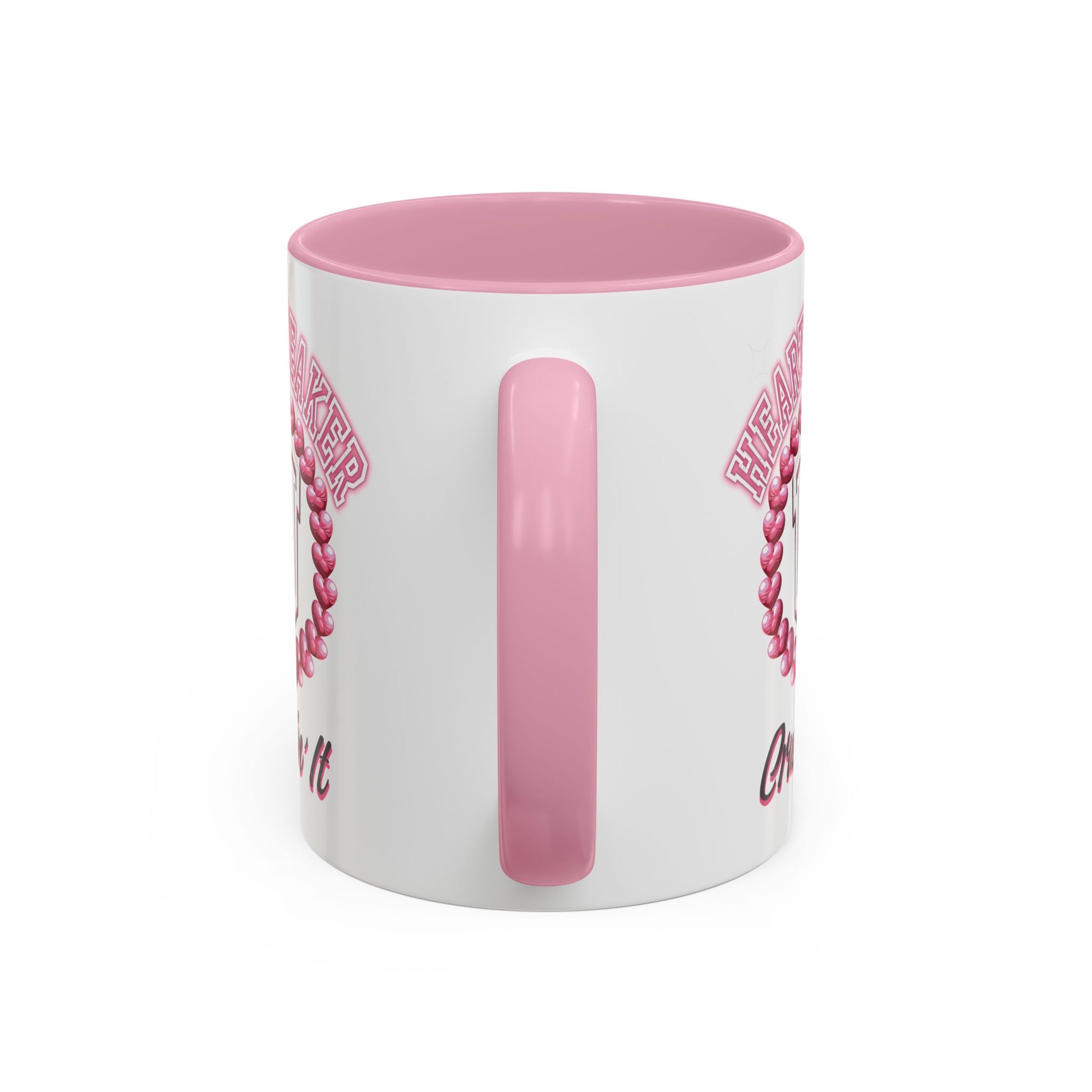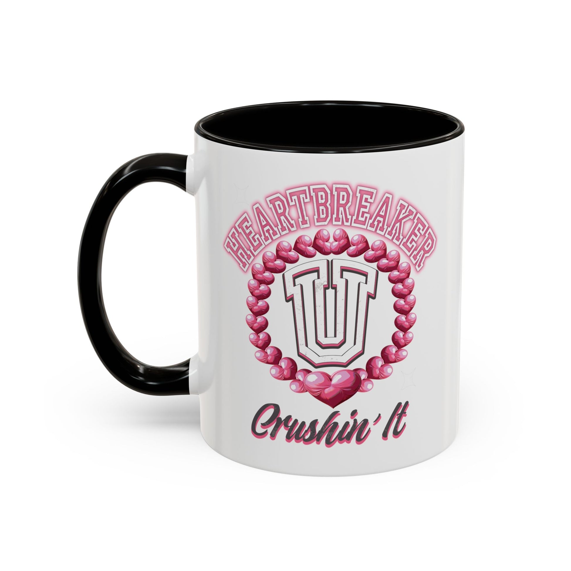 Hey heartbreaker šš! Ā #HeartbreakerU". Sip your hot drink in style that blends retro vibes with modern Y2K fashion! The stunning pink bubble heart design frames a bold varsity letter, creating the perfect statement piece for Valentine's season or crushin' it year-round style! Available in 3 color options, these mugs hold 11oz of your favorite pick-me-up juice and come with a colored handle and interior. The glossy finish adds a classy touch that perfectly complements the high-fidelity artwork print.